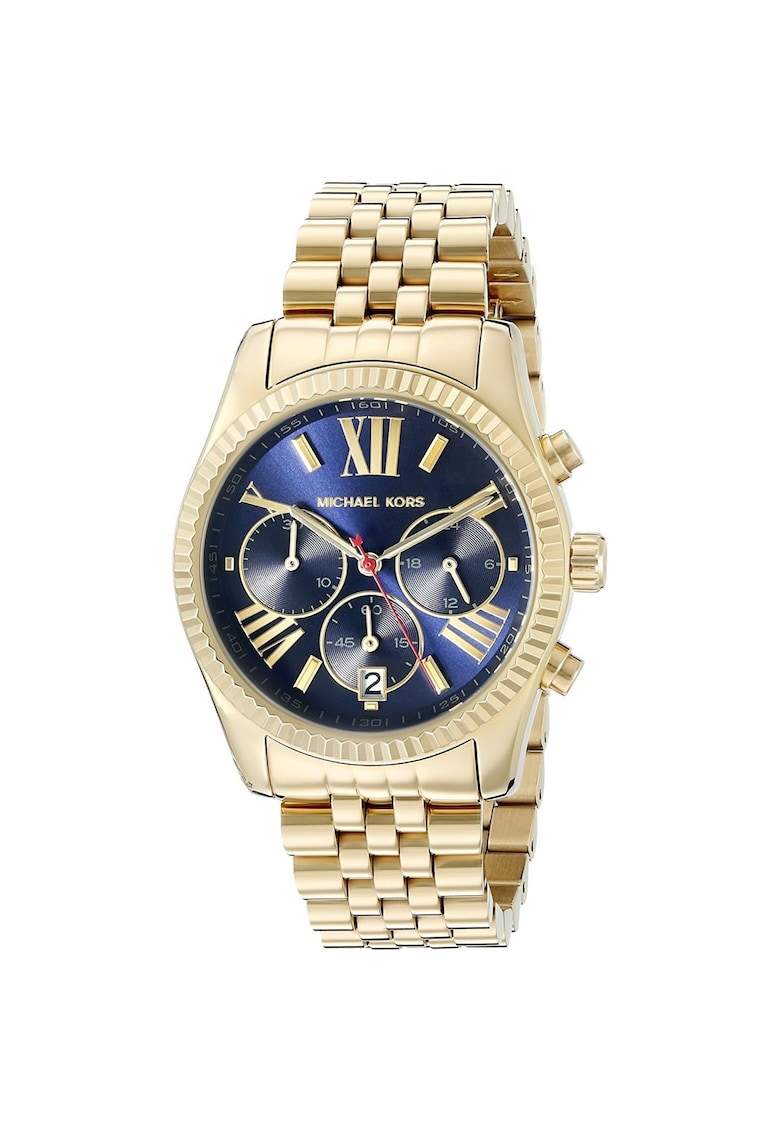 Caracteristici Tip mecanism: quartz Tip display: analog Stil: casual Functii: afisare data Rezistenta la apa: 10 atm Cadran Material geam: cristal mineral Culoare cadran: albastru Tip citire cadran: linii Carcasa Forma carcasa: rotunda Material carcasa: inox Culoare carcasa: auriu Diametru carcasa: 38 mm Curea/bratara Tip: bratara Material curea/bratara: inox Culoare curea/bratara: auriu