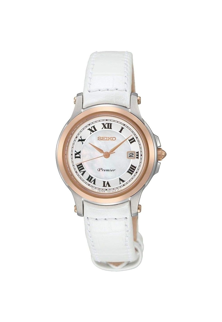 Caracteristici Tip mecanism: quartz Tip display: analog Stil: elegant Functii: afisare data Rezistenta la apa: 10 atm Cadran Material geam: cristal mineral Culoare cadran: alb Tip citire cadran: cifre romane Carcasa Forma carcasa: rotunda Material carcasa: inox Culoare carcasa: argintiu Diametru carcasa: 28 mm Curea/bratara Tip: curea Material curea/bratara: piele naturala Culoare curea/bratara: alb
