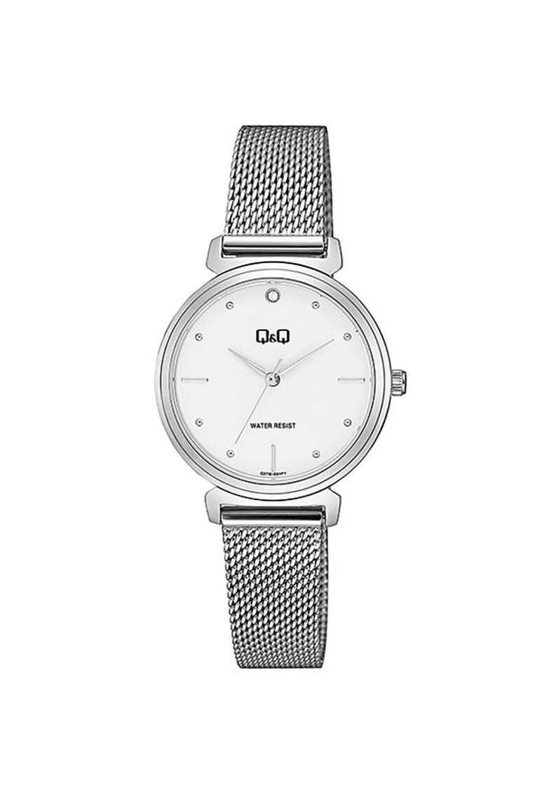 - secunda Rezistenta la apa: 3 atm Cadran Material geam: cristal mineral Culoare cadran: alb Tip citire cadran: puncte Carcasa Forma carcasa: rotunda Material carcasa: metal Culoare carcasa: argintiu Diametru carcasa: 32 mm Curea/bratara Tip: bratara Material curea/bratara: otel Culoare curea/bratara: argintiu Latime curea/bratara: 14.1 mm