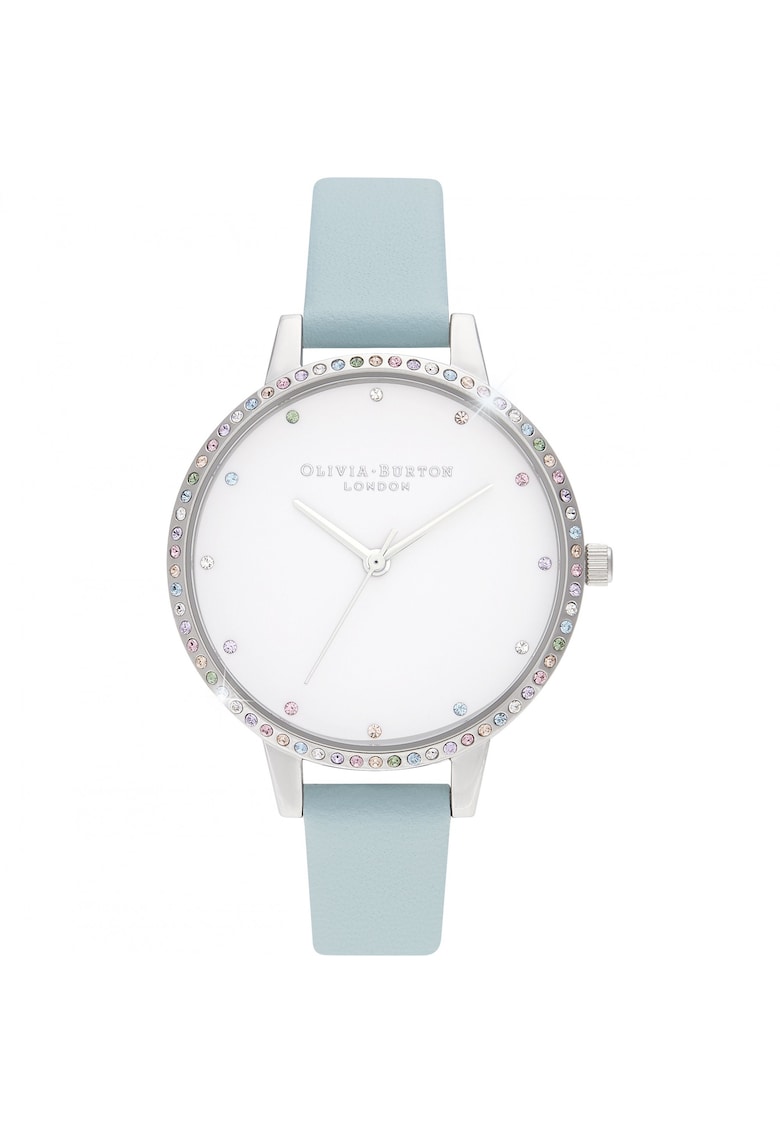 Caracteristici Tip mecanism: quartz Tip display: analog Stil: casual Functii: minut Rezistenta la apa: 3 atm Cadran Material geam: cristal mineral Culoare cadran: alb Tip citire cadran: linii Carcasa Forma carcasa: rotunda Material carcasa: inox Culoare carcasa: argintiu Diametru carcasa: 34 mm Curea/bratara Tip: curea Material curea/bratara: piele ecologica Culoare curea/bratara: albastru
