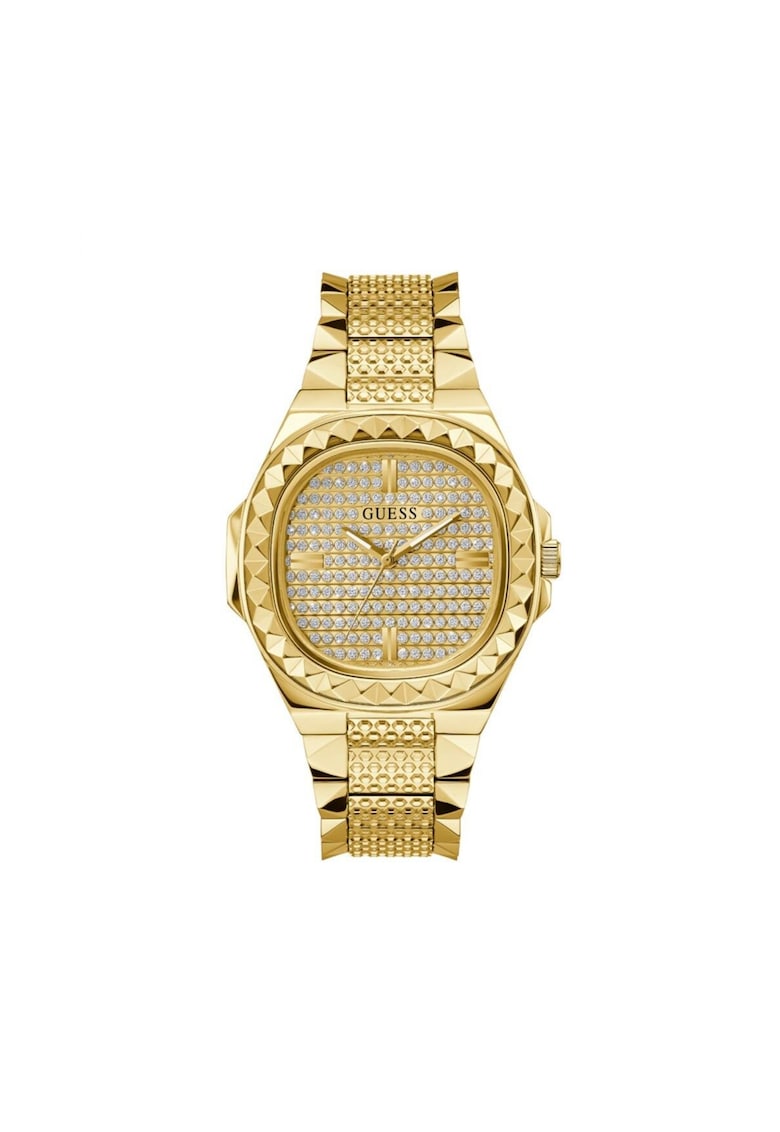 Caracteristici Tip mecanism: quartz Tip display: analog Stil: casual Functii: minut Rezistenta la apa: 5 atm Cadran Material geam: cristal mineral Culoare cadran: auriu Tip citire cadran: linii Carcasa Forma carcasa: patrata Material carcasa: inox Culoare carcasa: auriu Diametru carcasa: 42 mm Curea/bratara Tip: bratara Material curea/bratara: inox Culoare curea/bratara: auriu