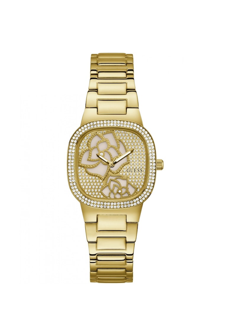 Caracteristici Tip mecanism: quartz Tip display: analog Stil: elegant Functii: minut Rezistenta la apa: 3 atm Cadran Material geam: cristal mineral Culoare cadran: auriu Tip citire cadran: fara indici Carcasa Forma carcasa: patrata Material carcasa: inox Culoare carcasa: auriu Diametru carcasa: 32 mm Curea/bratara Tip: bratara Material curea/bratara: inox Culoare curea/bratara: auriu