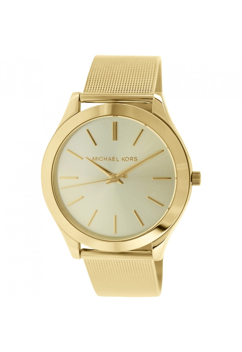 Caracteristici Tip mecanism: quartz Tip display: analog Stil: elegant Functii: minut Rezistenta la apa: 5 atm Cadran Material geam: cristal mineral Culoare cadran: auriu Tip citire cadran: linii Carcasa Forma carcasa: rotunda Material carcasa: inox Culoare carcasa: auriu Diametru carcasa: 42 mm Curea/bratara Tip: plasa Material curea/bratara: inox Culoare curea/bratara: auriu