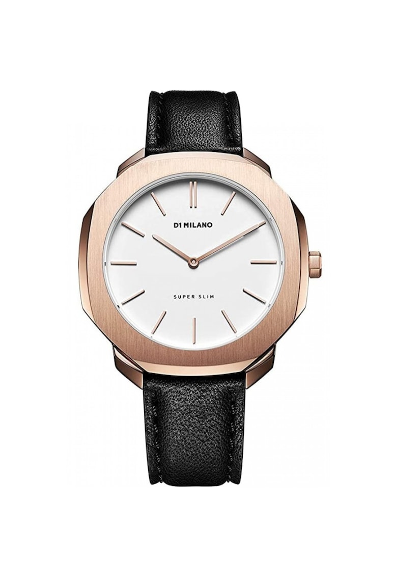Caracteristici Tip mecanism: quartz Tip display: analog Stil: casual Functii: minut Rezistenta la apa: 3 atm Cadran Material geam: cristal mineral Culoare cadran: alb Tip citire cadran: linii Carcasa Forma carcasa: rotunda Material carcasa: inox Culoare carcasa: auriu Diametru carcasa: 36 mm Curea/bratara Tip: curea Material curea/bratara: piele naturala Culoare curea/bratara: negru