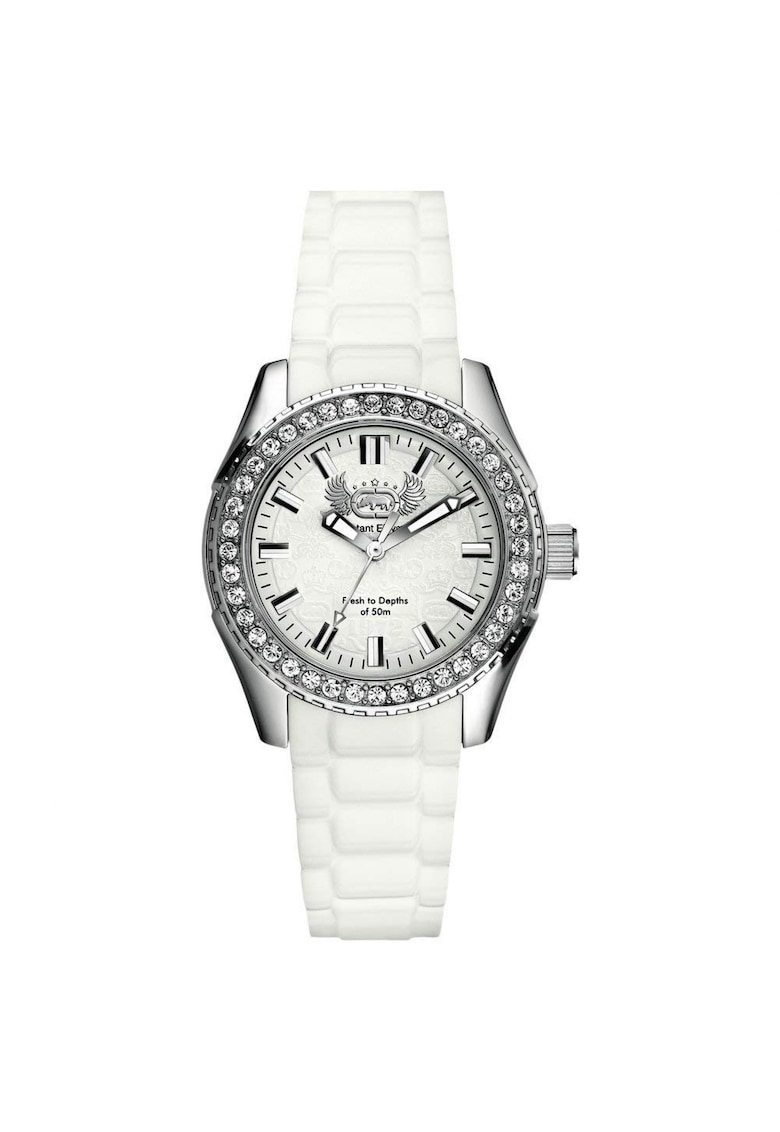 Caracteristici Tip mecanism: quartz Tip display: analog Stil: casual Functii: minut Rezistenta la apa: 5 atm Cadran Material geam: cristal mineral Culoare cadran: alb Tip citire cadran: linii Carcasa Forma carcasa: rotunda Material carcasa: inox Culoare carcasa: argintiu Diametru carcasa: 36 mm Curea/bratara Tip: curea Material curea/bratara: silicon Culoare curea/bratara: alb