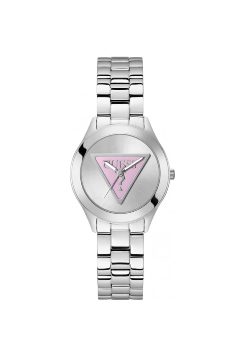 Caracteristici Tip mecanism: quartz Tip display: analog Stil: casual Functii: minut Rezistenta la apa: 3 atm Cadran Material geam: cristal mineral Culoare cadran: argintiu Carcasa Forma carcasa: rotunda Material carcasa: inox Culoare carcasa: argintiu Diametru carcasa: 34 mm Curea/bratara Tip: bratara Material curea/bratara: inox Culoare curea/bratara: argintiu