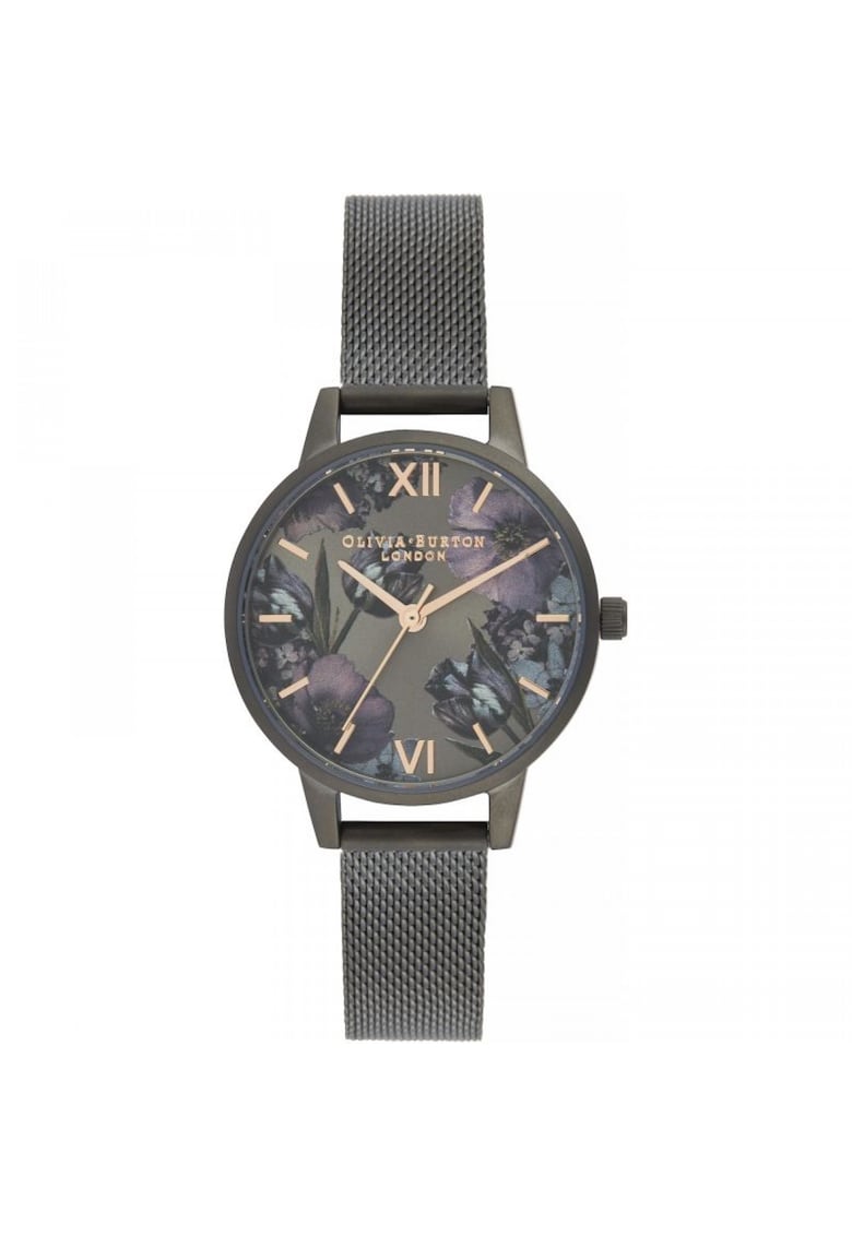 Caracteristici Tip mecanism: quartz Tip display: analog Stil: casual Functii: minut Rezistenta la apa: 3 atm Cadran Material geam: cristal mineral Culoare cadran: gri Tip citire cadran: linii Carcasa Forma carcasa: rotunda Material carcasa: inox Culoare carcasa: negru Diametru carcasa: 30 mm Curea/bratara Tip: plasa Material curea/bratara: inox Culoare curea/bratara: negru