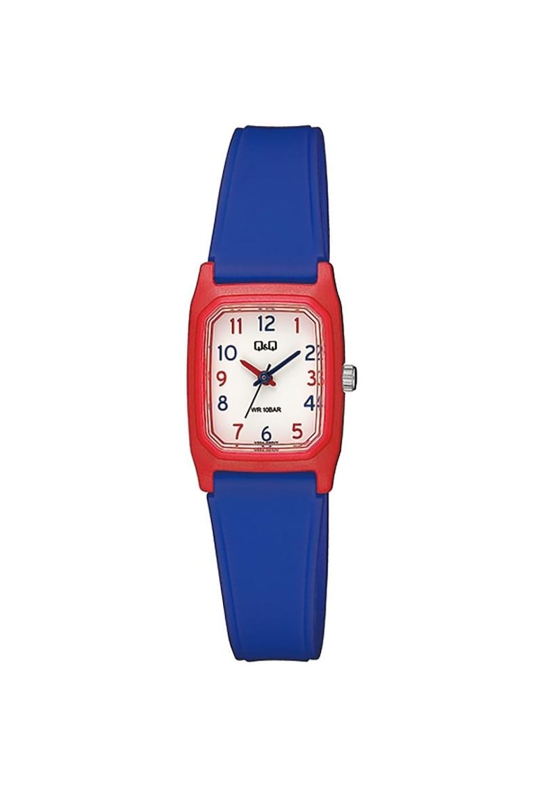 - secunda Rezistenta la apa: 10 atm Cadran Material geam: plastic Culoare cadran: alb Tip citire cadran: cifre arabe Carcasa Forma carcasa: dreptunghiulara Material carcasa: rasina Culoare carcasa: rosu Diametru carcasa: 21 mm Curea/bratara Tip: curea Material curea/bratara: rasina Culoare curea/bratara: albastru Latime curea/bratara: 14.1 mm