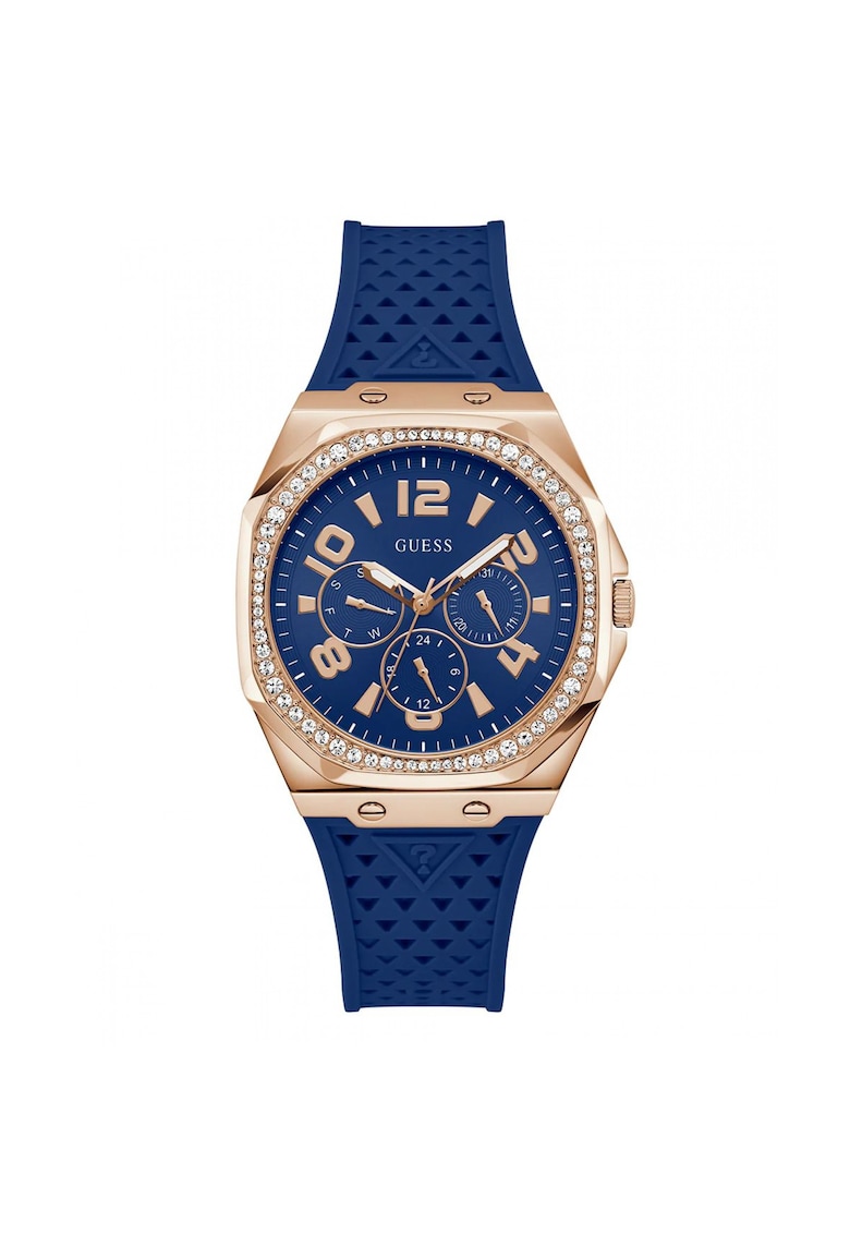 Caracteristici Tip mecanism: quartz Tip display: analog Stil: casual Functii: afisare data Rezistenta la apa: 3 atm Cadran Material geam: cristal mineral Culoare cadran: albastru Tip citire cadran: linii Carcasa Forma carcasa: patrata Material carcasa: inox Culoare carcasa: auriu Diametru carcasa: 39 mm Curea/bratara Tip: curea Material curea/bratara: silicon Culoare curea/bratara: albastru