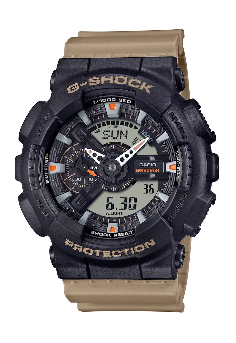 Caracteristici generale Tip mecanism: quartz Stil: casual Tip display: hibrid Functii: afisare data Rezistenta la apa: 20 atm Ambalaj: produsul este livrat cu un certificat de autenticitate. Cadran Material geam: cristal mineral Culoare cadran: negru Tip citire cadran: linii Carcasa Forma carcasa: rotunda Material carcasa: plastic Culoare carcasa: negru Diametru carcasa: 51 mm Curea/bratara Tip: curea Material curea/bratara: plastic Culoare curea/bratara: bej