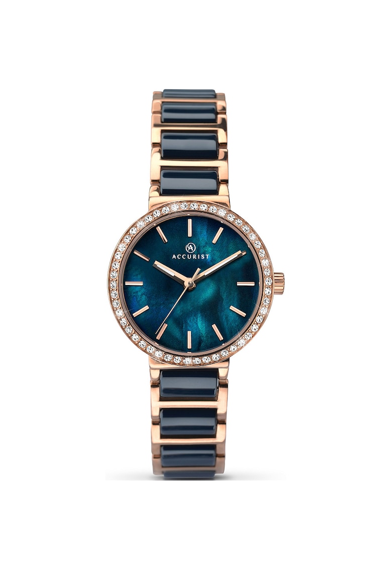 - secunda Sistem inchidere: catarama tip bijuterie Rezistenta la apa: 5 atm Cadran Material geam: cristal mineral Culoare indici: auriu Carcasa Forma carcasa: rotunda Material carcasa: inox Culoare carcasa: auriu Diametru carcasa: 29 mm Grosime carcasa: 8 mm Curea/bratara Material curea/bratara: ceramica