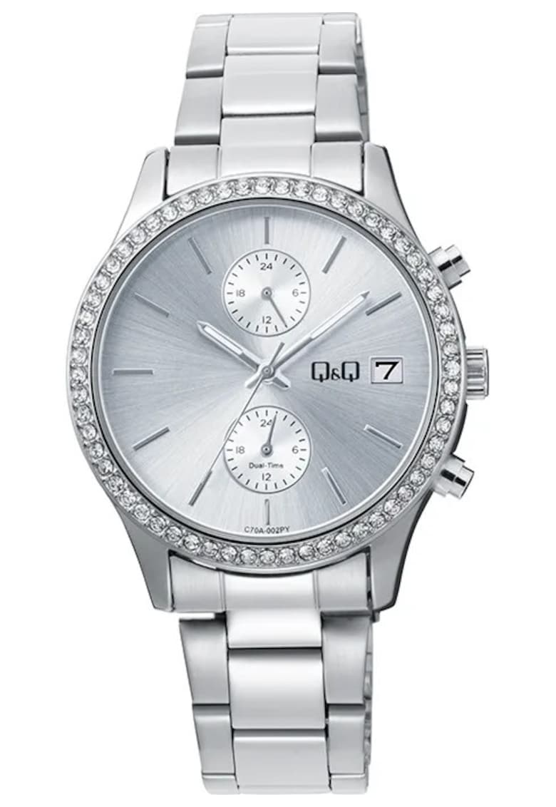 - suprafete abrazive. Cadran Material geam: cristal mineral Culoare cadran: argintiu Culoare indici: argintiu Carcasa Material carcasa: metal Culoare carcasa: argintiu Diametru carcasa: 37 mm Grosime carcasa: 10 mm Curea/bratara Material curea/bratara: metal Culoare curea/bratara: argintiu