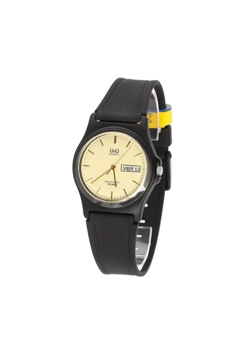 Caracteristici generale Tip mecanism: quartz Stil: sport Sistem inchidere: catarama Tip display: analog Functii: minut Rezistenta la apa: 10 atm Cadran Material geam: plastic Culoare cadran: galben Tip citire cadran: cifre arabe Carcasa Forma carcasa: rotunda Material carcasa: plastic Culoare carcasa: negru Diametru carcasa: 43 mm Curea/bratara Tip: curea Material curea/bratara: silicon Culoare curea/bratara: negru