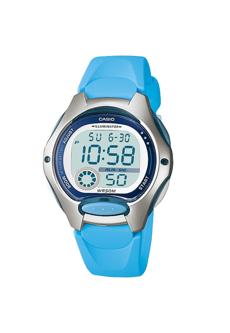 - luminare led Finisaj carcasa: lucioasa Tip citire cadran: cifre arabe Culoare curea/bratara: albastru Sistem inchidere: catarama Compozitie Material carcasa: rasina Material curea/bratara: cauciuc Material geam: cristal mineral Finisaj curea/bratara: mat Dimensiuni Diametru carcasa: 34.9 mm