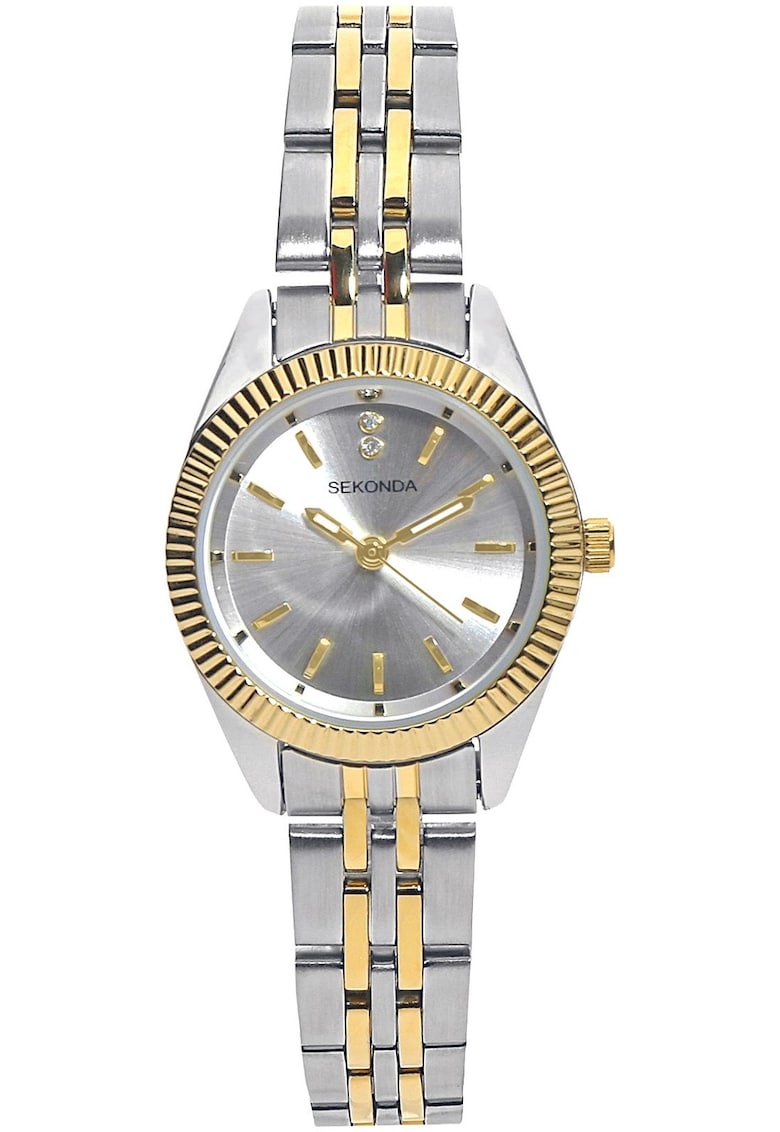 Caracteristici Tip mecanism: quartz Tip display: analog Rezistenta la apa: 3 atm Ambalaj: produsul este livrat cu un certificat de autenticitate. Cadran Material geam: cristal mineral Culoare cadran: argint Carcasa Material carcasa: metal Culoare carcasa: argintiu si auriu Curea/bratara Tip: bratara Material curea/bratara: metal Culoare curea/bratara: argintiu si auriu