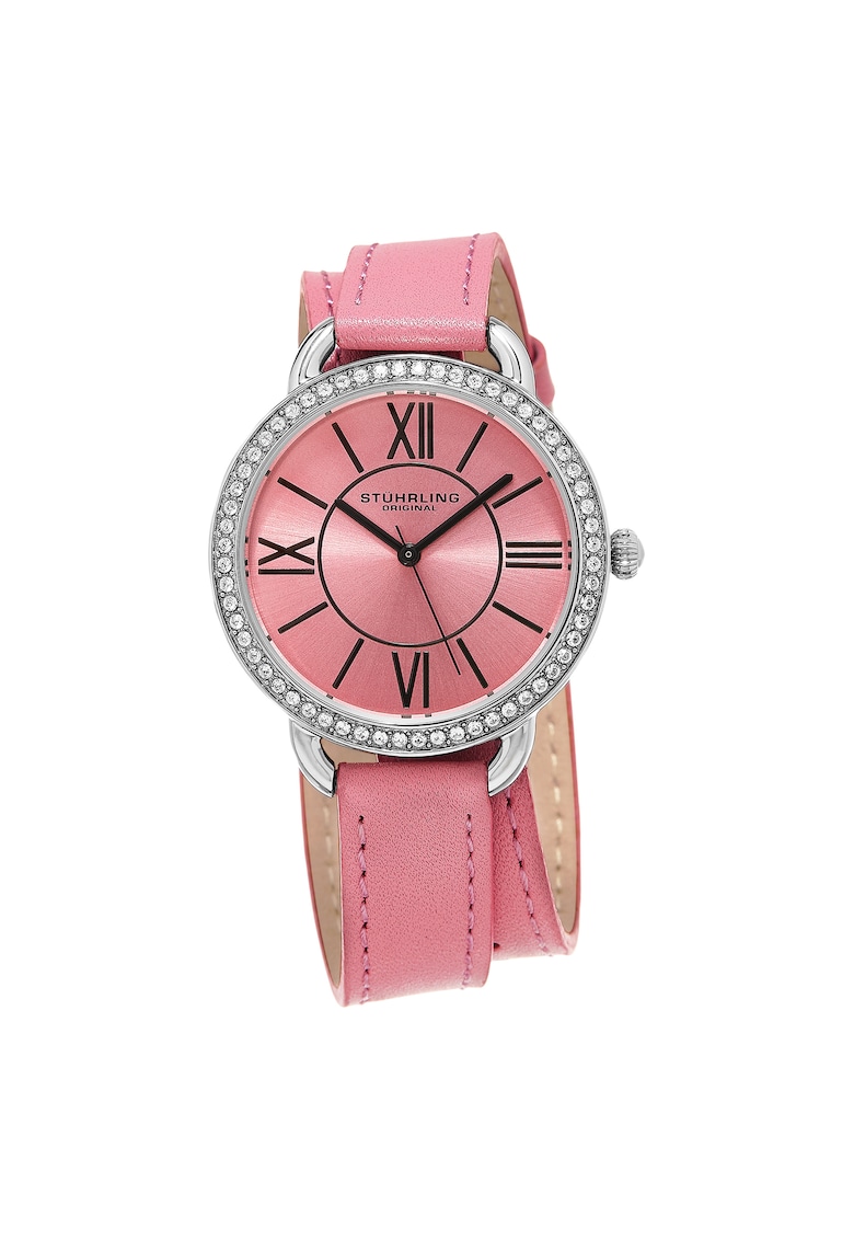 - secunda Rezistenta la apa: 5 atm Cadran Material geam: cristal mineral Culoare cadran: roz Carcasa Forma carcasa: rotunda Material carcasa: inox Culoare carcasa: argintiu Diametru carcasa: 37 mm Curea/bratara Tip: curea Material curea/bratara: piele naturala Culoare curea/bratara: roz Latime curea/bratara: 14 mm