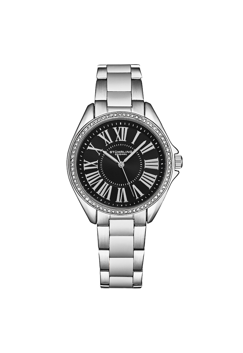 - secunda Rezistenta la apa: 5 atm Detalii: decorat cu cristale Cadran Material geam: cristal mineral Culoare cadran: negru Carcasa Forma carcasa: rotunda Material carcasa: aliaj Culoare carcasa: argintiu Diametru carcasa: 39 mm Curea/bratara Tip: bratara Material curea/bratara: inox Culoare curea/bratara: argintiu
