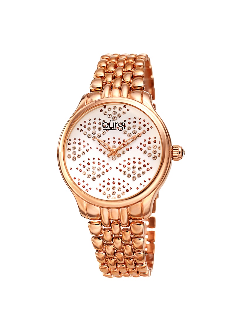 - placaj ip Cadran Material geam: cristal mineral Culoare cadran: alb Carcasa Forma carcasa: rotunda Material carcasa: aliaj Culoare carcasa: auriu rose Diametru carcasa: 36 mm Grosime carcasa: 10 mm Curea/bratara Tip: bratara Material curea/bratara: aliaj Culoare curea/bratara: auriu rose Latime curea/bratara: 16 mm