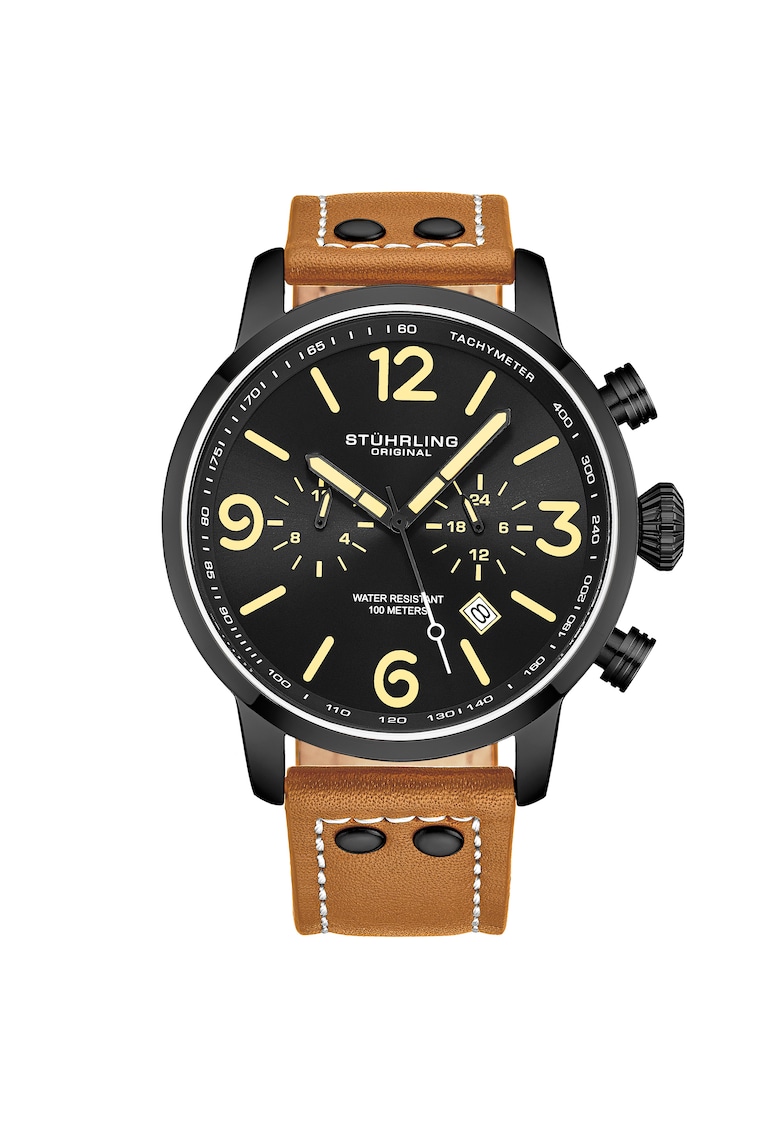 - afisare 24 h Rezistenta la apa: 10 atm Cadran Material geam: cristal mineral Tip citire cadran: cifre arabe Carcasa Forma carcasa: rotunda Material carcasa: inox Culoare carcasa: negru Curea/bratara Tip: curea Material curea/bratara: piele naturala Culoare curea/bratara: maro