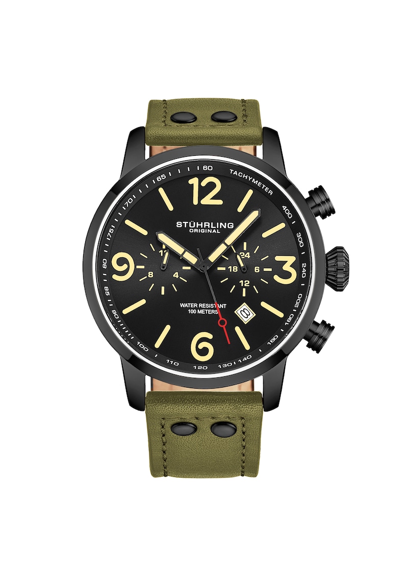 - afisare 24 h Rezistenta la apa: 10 atm Cadran Material geam: cristal mineral Tip citire cadran: cifre arabe Carcasa Forma carcasa: rotunda Material carcasa: inox Culoare carcasa: negru Curea/bratara Tip: curea Material curea/bratara: piele naturala Culoare curea/bratara: verde oliv