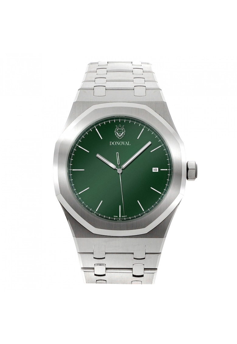 Caracteristici generale Tip mecanism: quartz Stil: casual Tip display: analog Functii: afisare data Rezistenta la apa: 3 atm Cadran Material geam: cristal mineral Culoare cadran: verde Tip citire cadran: linii Carcasa Forma carcasa: rotunda Material carcasa: inox Culoare carcasa: argintiu Diametru carcasa: 41 mm Curea/bratara Tip: bratara Material curea/bratara: inox Culoare curea/bratara: argintiu