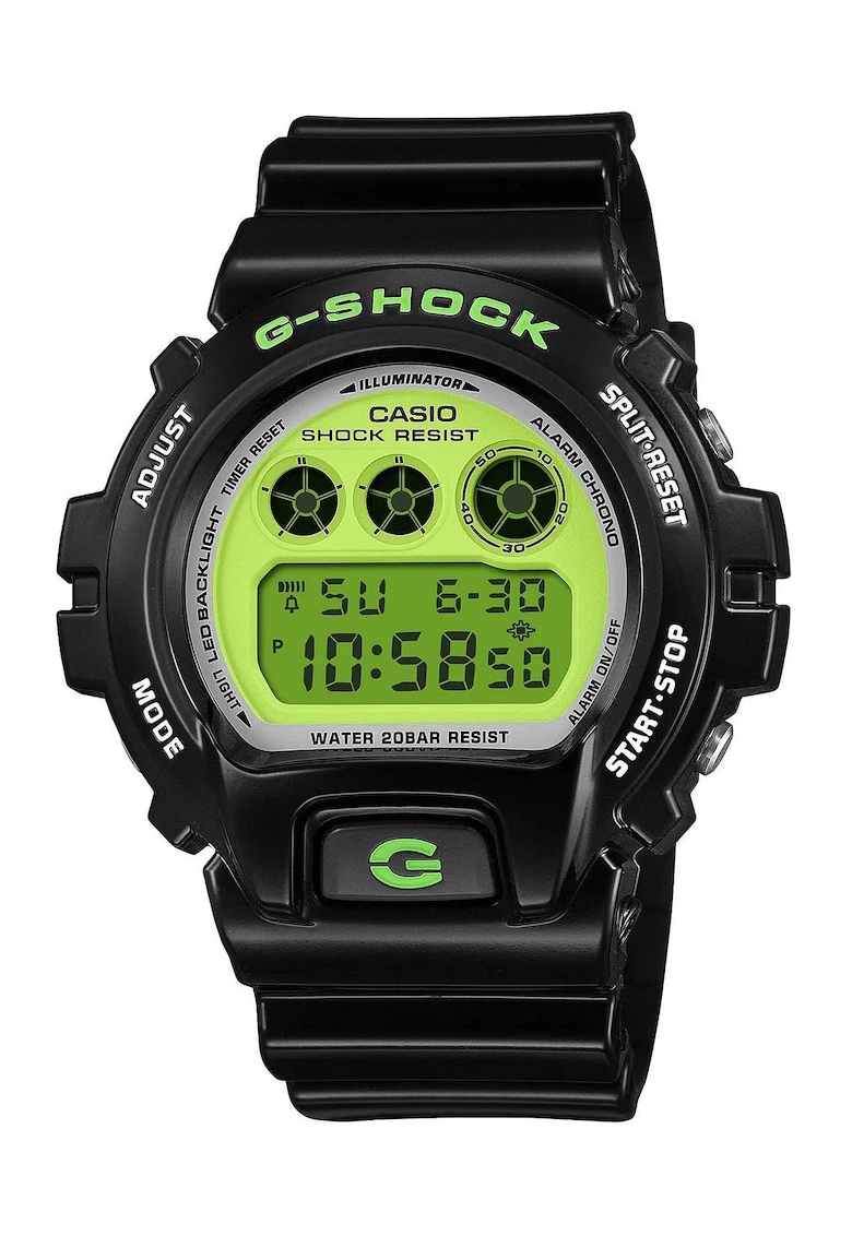 Caracteristici generale Tip mecanism: quartz Stil: casual Tip display: digital Functii: afisare data Rezistenta la apa: 20 atm Ambalaj: produsul este livrat cu un certificat de autenticitate. Cadran Material geam: cristal mineral Culoare cadran: verde Tip citire cadran: cifre arabe Carcasa Forma carcasa: rotunda Material carcasa: rasina Culoare carcasa: negru Diametru carcasa: 50 mm Curea/bratara Tip: curea Material curea/bratara: rasina Culoare curea/bratara: negru