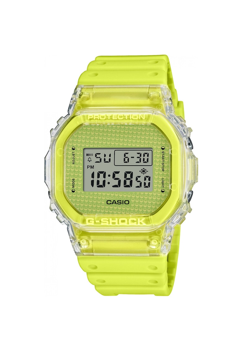 Caracteristici generale Tip mecanism: quartz Stil: casual Tip display: digital Functii: afisare data Rezistenta la apa: 20 atm Ambalaj: produsul este livrat cu un certificat de autenticitate. Cadran Material geam: cristal mineral Culoare cadran: galben Tip citire cadran: cifre arabe Carcasa Forma carcasa: dreptunghiulara Material carcasa: rasina Culoare carcasa: galben Diametru carcasa: 43 mm Curea/bratara Tip: curea Material curea/bratara: rasina Culoare curea/bratara: galben