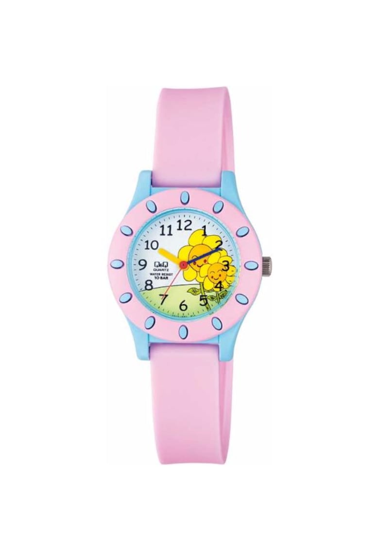 Caracteristici Mecanism: quartz Rezistenta la apa: 10 atm Stil: casual Afisaj: analogic Carcasa: rotunda Culoare carcasa: albastru Functii: minut Finisaj carcasa: mat Tip citire cadran: cifre arabe Culoare curea/bratara: roz Sistem inchidere: clasic Compozitie Material carcasa: plastic Material curea/bratara: cauciuc Material geam: plastic Finisaj curea/bratara: mat Dimensiuni Diametru carcasa: 30 mm Latime curea/bratara: 16 mm