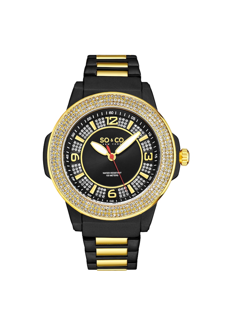 - secunda Rezistenta la apa: 10 atm Cadran Material geam: cristal mineral Carcasa Forma carcasa: rotunda Material carcasa: aliaj Culoare carcasa: negru Diametru carcasa: 48 mm Curea/bratara Tip: bratara Material curea/bratara: inox Culoare curea/bratara: auriu