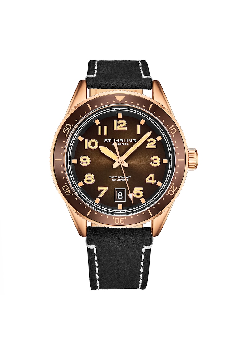 - afisare data Rezistenta la apa: 5 atm Cadran Material geam: cristal mineral Tip citire cadran: cifre arabe Carcasa Forma carcasa: rotunda Material carcasa: inox Culoare carcasa: auriu rose Diametru carcasa: 42 mm Curea/bratara Tip: curea Material curea/bratara: piele naturala Culoare curea/bratara: negru