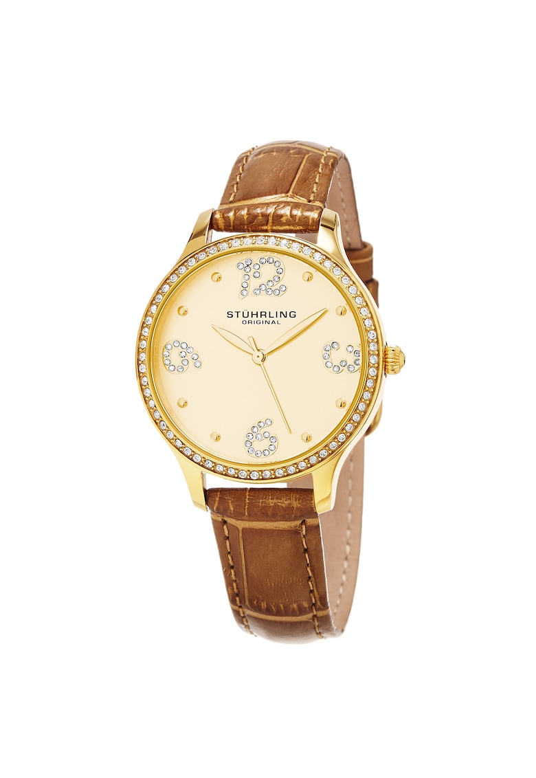 - secunda Sistem inchidere: catarama Rezistenta la apa: 5 atm Cadran Material geam: cristal mineral Tip citire cadran: cifre arabe Carcasa Forma carcasa: rotunda Material carcasa: inox Culoare carcasa: auriu Diametru carcasa: 36 mm Curea/bratara Tip: curea Material curea/bratara: piele naturala Culoare curea/bratara: maro