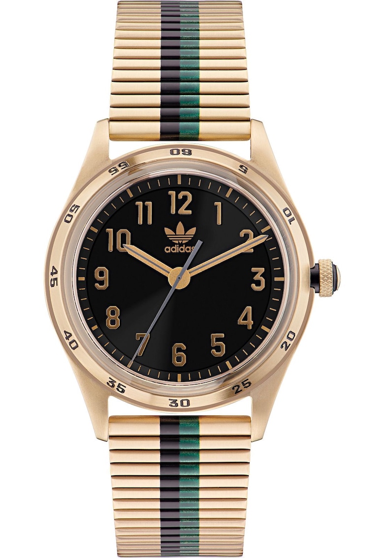 Caracteristici generale Tip mecanism: quartz Stil: casual Tip display: analog Functii: minut Rezistenta la apa: 5 atm Cadran Material geam: cristal mineral Culoare cadran: negru Tip citire cadran: cifre arabe Carcasa Forma carcasa: rotunda Material carcasa: inox Culoare carcasa: auriu Diametru carcasa: 42 mm Curea/bratara Tip: bratara Material curea/bratara: inox Culoare curea/bratara: auriu