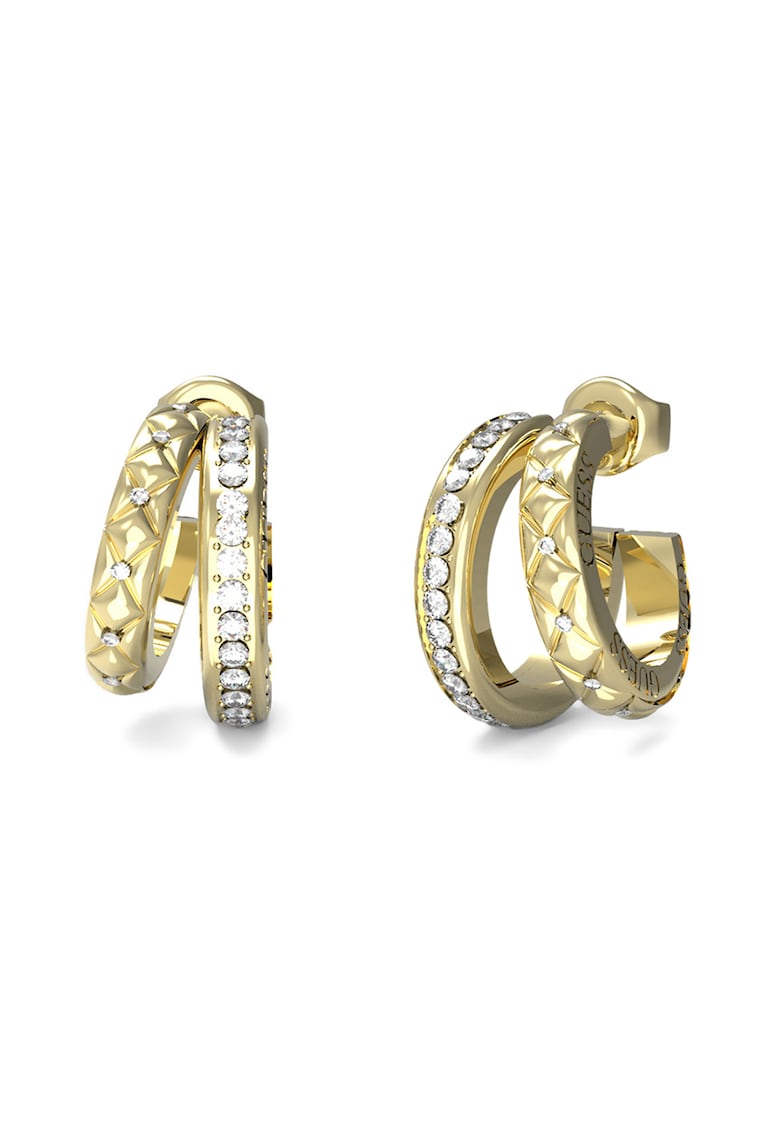 - suprafete abrazive. Sistem inchidere: tija si surub Linie Brand: stylish guess Ambalaj: produsul se livreaza in ambalaj personalizat. Compozitie Compozitie: otel inoxidabil Pietre: cristale Placaj: aur galben de 0 -5 microni Dimensiuni Lungime: 18 mm Latime: 8.4 mm