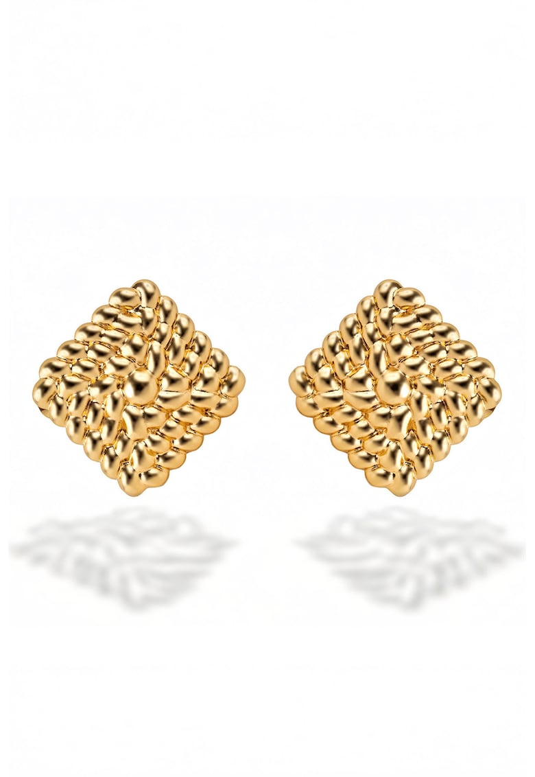 - suprafete abrazive. Sistem inchidere: tija si surub Ambalaj: produsul se livreaza in ambalaj personalizat. Compozitie Compozitie: otel inoxidabil Pietre: fara pietre Placaj: aur galben de 18k Dimensiuni Lungime: 2.7 cm Latime: 2.7 cm