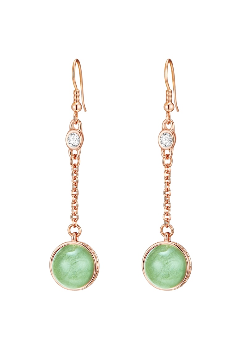 Caracteristici Tip produs: cercei Material: aliaj Culoare: auriu rose Ambalaj: produsul este livrat in ambalaj personalizat. Compozitie Compozitie: aliaj Pietre: cristale Placaj: aur rose de 14k Dimensiuni Lungime: 6.4 cm Informatii suplimentare: a se evita lovirea