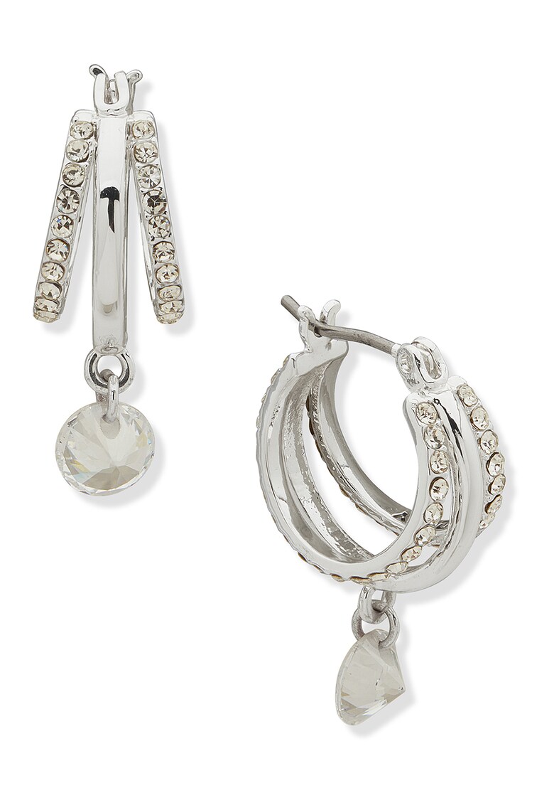 Caracteristici Tip produs: cercei Material: alama Culoare: argintiu Ambalaj: produsul se livreaza in ambalaj personalizat. Compozitie Compozitie: alama Pietre: cristale Dimensiuni Informatii suplimentare: a se evita lovirea