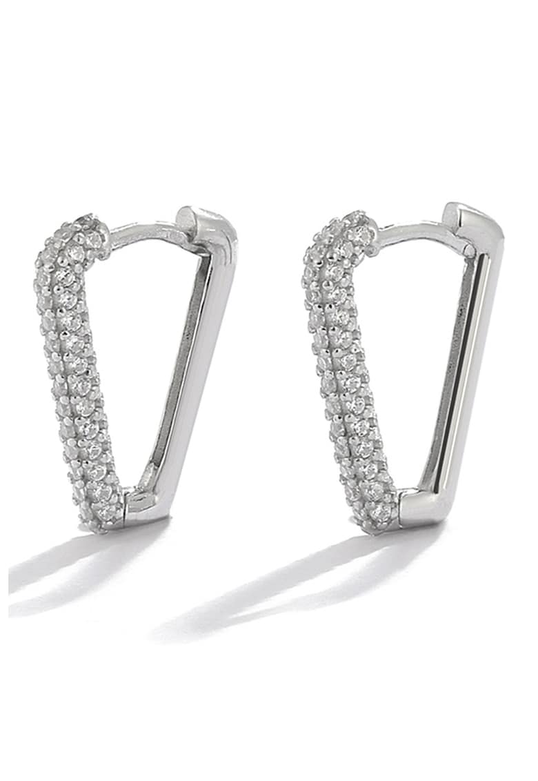 Caracteristici Tip produs: cercei Material: argint Culoare: argintiu Ambalaj: produsul se livreaza in ambalaj personalizat. Gramaj: 2.8 g Compozitie Compozitie: argint 925 Pietre: zirconiu Dimensiuni Lungime: 1.8 cm Informatii suplimentare: a se evita lovirea