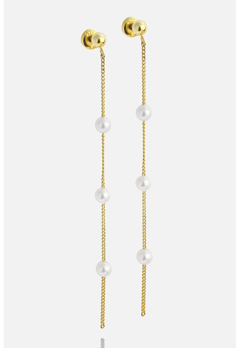 Caracteristici Tip produs: cercei Material: argint Culoare: auriu Ambalaj: produsul se livreaza in ambalaj personalizat. Gramaj: 1.99 g Compozitie Compozitie: argint veritabil 925 Pietre: perle sintetice Placaj: pvd Dimensiuni Lungime pandantiv: 4 mm Lungime: 7.5 cm Informatii suplimentare: a se evita socurile mecanice si termice