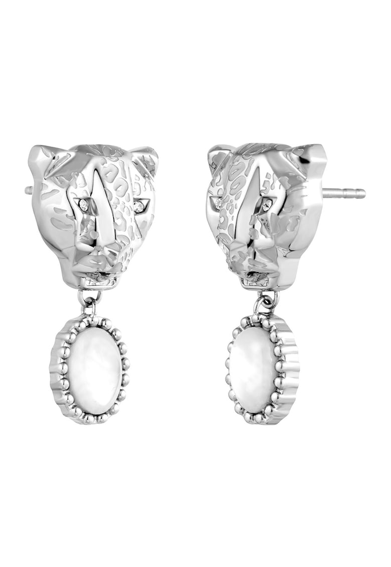 Caracteristici Tip produs: cercei Material: inox Culoare: argintiu Detalii: decorat cu cristale Ambalaj: produsul se livreaza in ambalaj personalizat. Compozitie Compozitie: inox Pietre: cristale Dimensiuni Lungime: 2.3 cm Latime: 1.27 mm Informatii suplimentare: a se evita socurile termice si mecanice