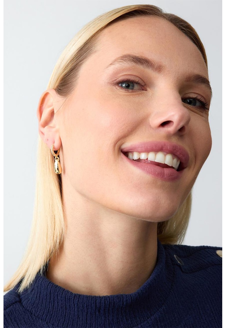 Caracteristici Tip produs: cercei Material: metal Culoare: auriu Ambalaj: produsul este livrat in ambalaj personalizat. Compozitie Compozitie: metal Pietre: zirconiu Dimensiuni Lungime: 2 cm Informatii suplimentare: a se evita lovirea