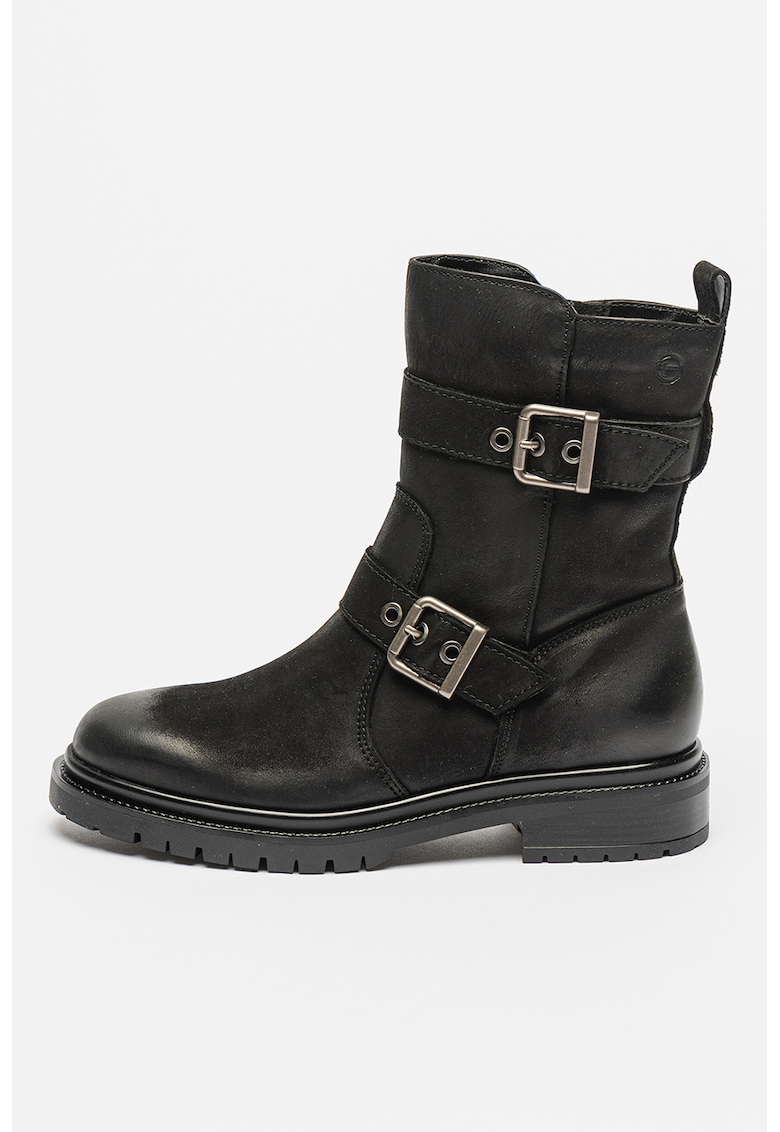 Caracteristici Tip: cu talpa joasa Culoare: negru Material: piele naturala Imprimeu: uni Stil: casual Varf: rotund Tip talpa: plata Detalii: catarame decorative Culoare elemente metalice: argintiu Sistem inchidere: fermoar Compozitie Partea superioara: piele Material interior: textil Material talpa: alte materiale