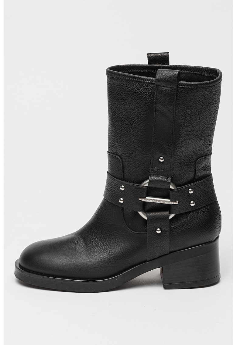 Caracteristici Tip: cu toc Culoare: negru Material: piele naturala Imprimeu: uni Stil: casual Varf: rotund Tip toc: masiv Culoare elemente metalice: argintiu Sistem inchidere: fara inchidere Compozitie Partea superioara: piele Material interior: piele Material talpa: alte materiale Dimensiuni Inaltime toc: 5.5 cm