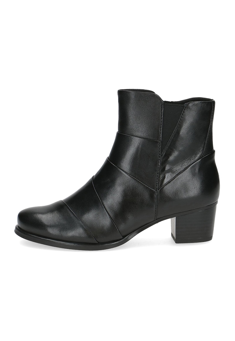 Caracteristici Tip: cu toc Culoare: negru Material: piele naturala Imprimeu: uni Stil: casual Varf: rotund Tip toc: masiv Culoare elemente metalice: gri metalizat Sistem inchidere: fermoar Compozitie Partea superioara: piele Material interior: sintetic Material talpa: alte materiale Dimensiuni Inaltime toc: 5 cm