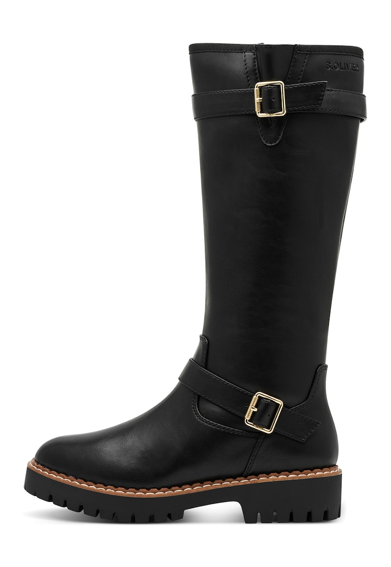 Caracteristici Tip: cu toc Culoare: negru Material: piele ecologica Stil: casual Varf: rotund Inaltime: 4 cm Culoare elemente metalice: auriu Sistem inchidere: fermoar Compozitie Partea superioara: alte materiale Material interior: alte materiale Material talpa: alte materiale Dimensiuni Inaltime toc: 4 cm