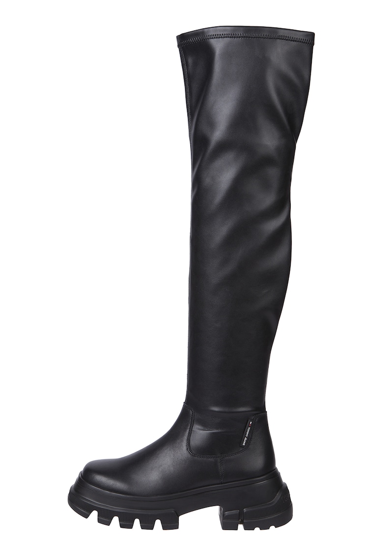 Caracteristici Tip: cu toc Culoare: negru Material: piele ecologica Imprimeu: uni Stil: casual Varf: rotund Tip toc: masiv Inaltime: 56 cm Detalii: talpa aderenta Culoare elemente metalice: negru Sistem inchidere: fermoar Compozitie Partea superioara: alte materiale Material interior: alte materiale