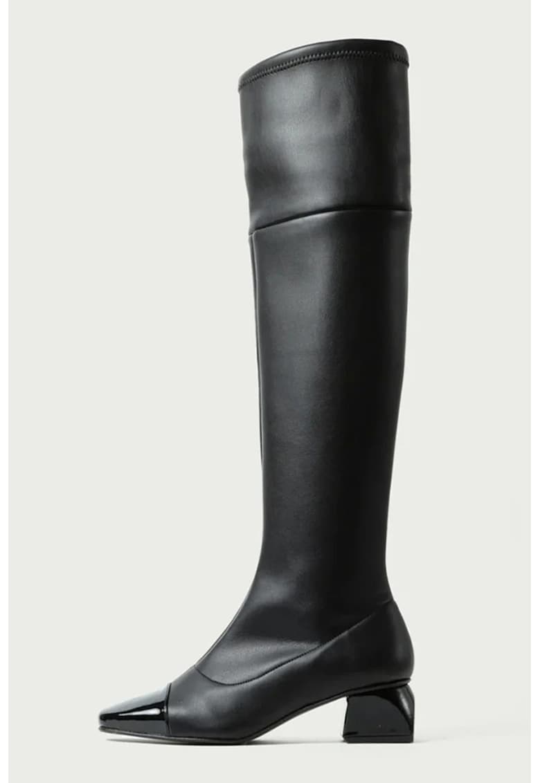 Caracteristici Tip: cu toc Culoare: negru Material: piele ecologica Imprimeu: uni Stil: casual Varf: patrat Tip toc: cubanez Culoare elemente metalice: negru Sistem inchidere: fara inchidere Compozitie Partea superioara: piele ecologica Material interior: textil Material talpa: alte materiale Dimensiuni Inaltime toc: 4 cm