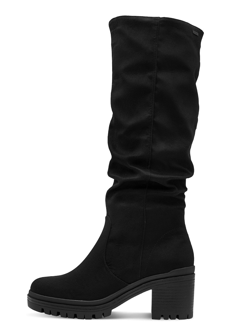 Caracteristici Tip: cu toc Culoare: negru Material: textil Imprimeu: uni Stil: casual Varf: rotund Tip toc: masiv Culoare elemente metalice: negru Sistem inchidere: fermoar Compozitie Partea superioara: material textil Material interior: textil Material talpa: alte materiale Dimensiuni Inaltime toc: 6.5 cm