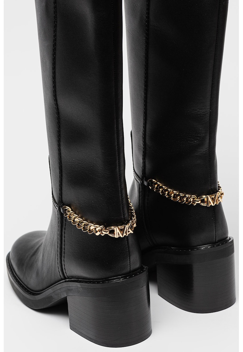 Caracteristici Tip: cu toc Culoare: negru Material: piele naturala Imprimeu: uni Stil: casual Varf: rotund Tip toc: masiv Detalii: lant Culoare elemente metalice: auriu Sistem inchidere: fara inchidere Compozitie Partea superioara: piele Material interior: piele