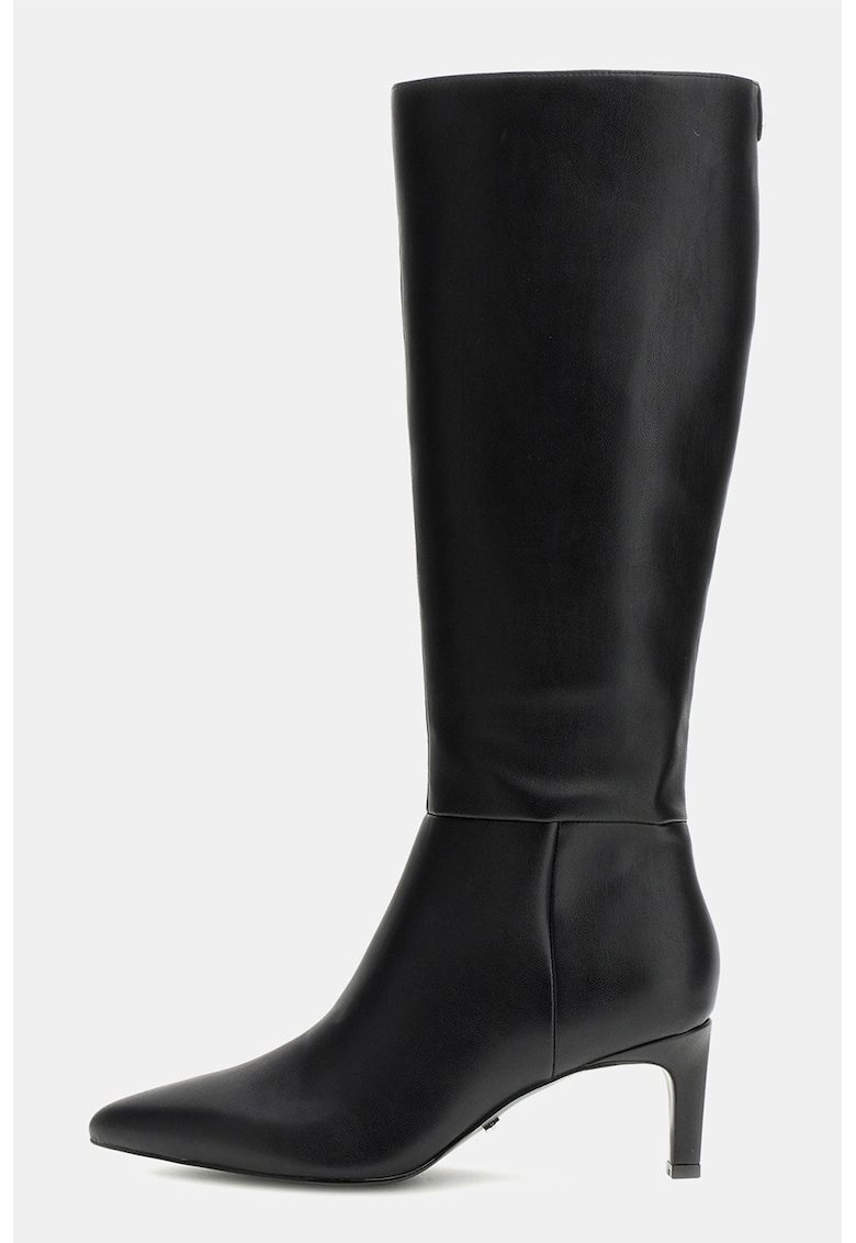 Caracteristici Tip: cu toc Culoare: negru Material: piele ecologica Imprimeu: uni Stil: elegant Varf: ascutit Tip toc: clasic Inaltime: 38.5 cm Culoare elemente metalice: argintiu Sistem inchidere: fermoar Compozitie Partea superioara: alte materiale Material interior: alte materiale Material talpa: alte materiale Dimensiuni Inaltime toc: 5.8 cm