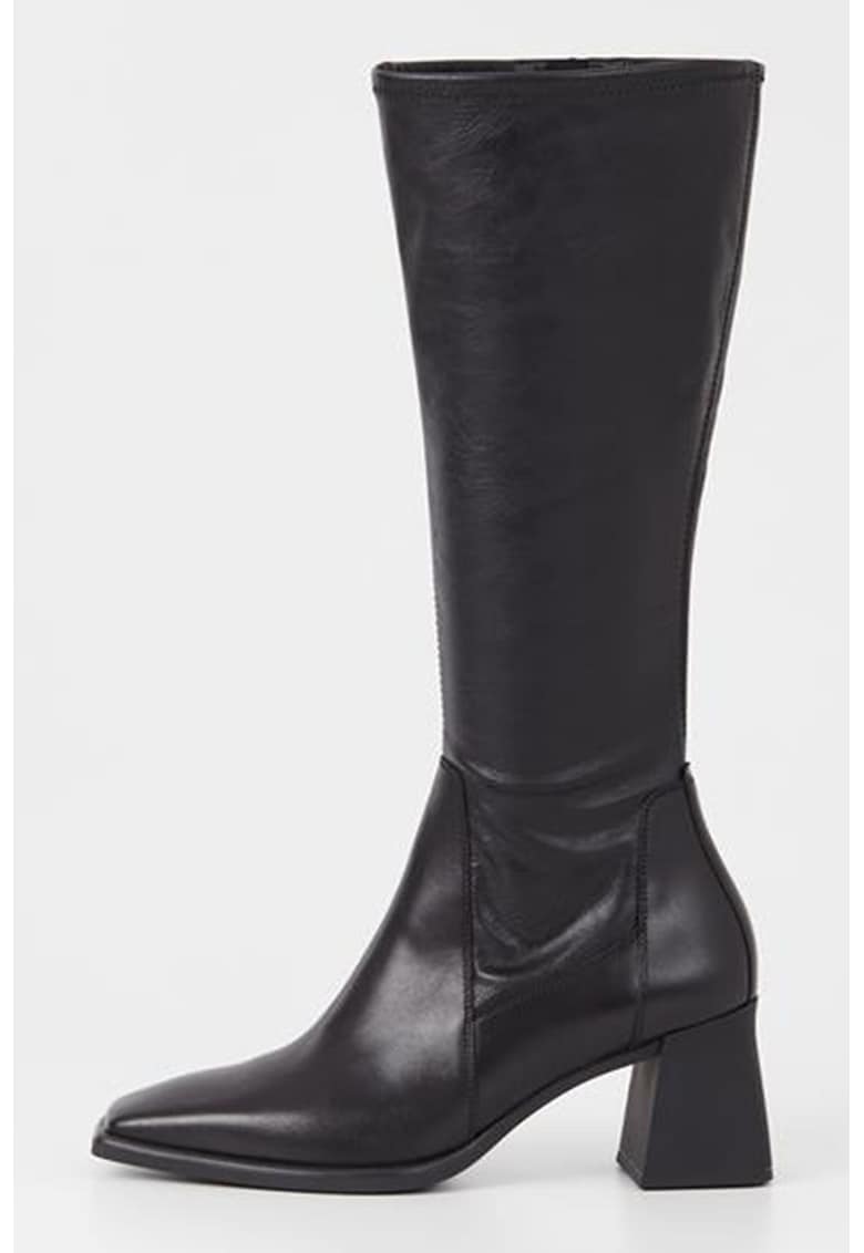 Caracteristici Tip: cu toc Culoare: negru Material: piele naturala Imprimeu: uni Stil: casual Varf: patrat Tip toc: masiv Culoare elemente metalice: negru Sistem inchidere: fermoar Compozitie Partea superioara: piele de vaca Material interior: textil Material talpa: alte materiale Dimensiuni Inaltime toc: 7 cm